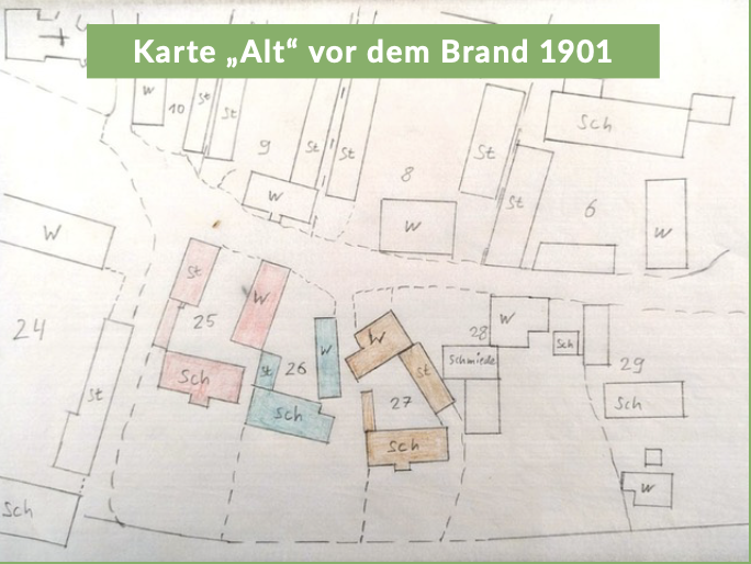 Die vollständigen Geschichten findest du direkt im Dorf: An den rot umrandeten Hausnummern auf der Karte wurden Tafeln angebracht – liebevoll gestaltet und gut sichtbar an den Häusern selbst.